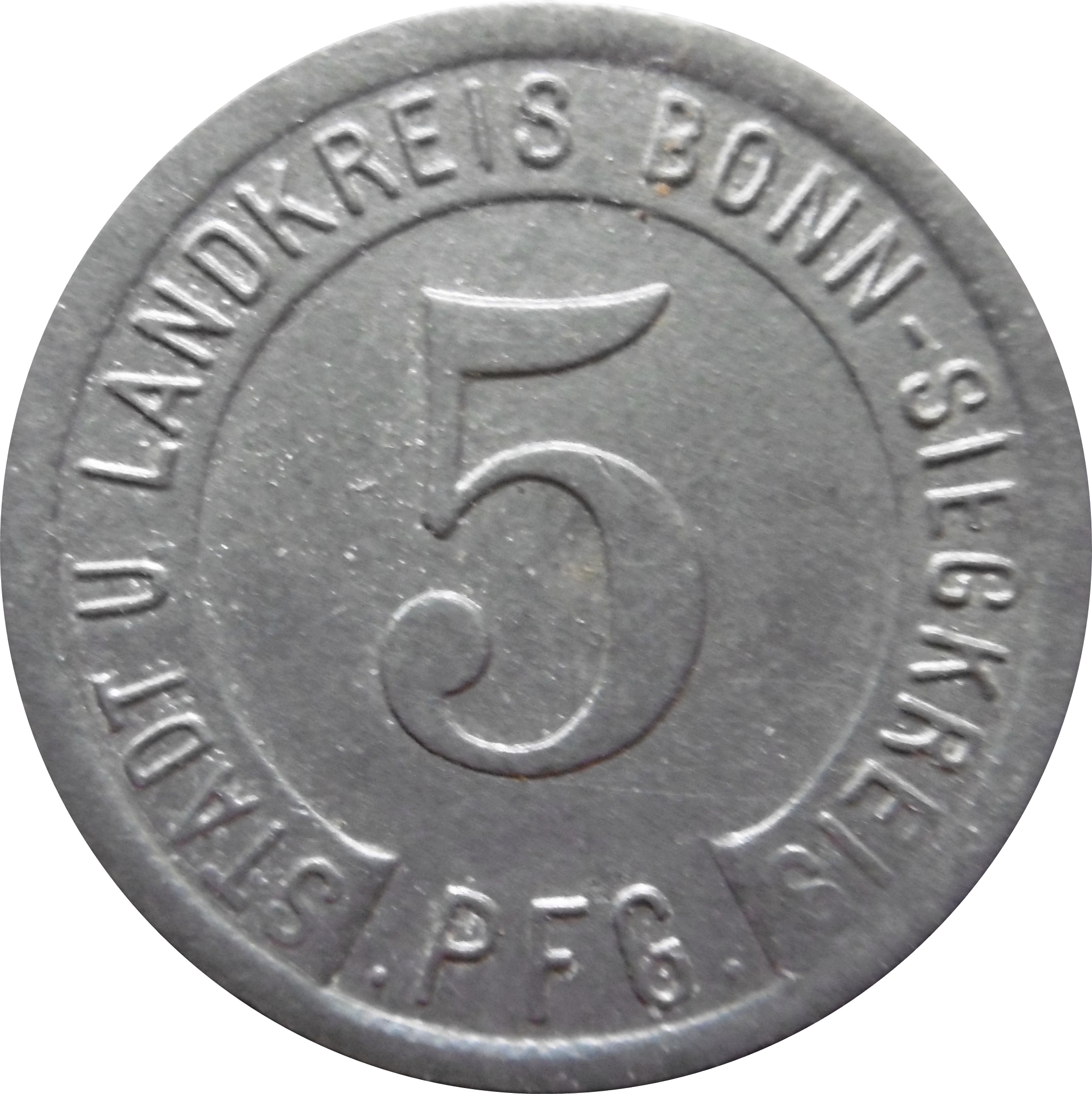 5 пфеннігів — Бонн-Зігкрайс 1919 – 1919 Бонн і Зіг, райони