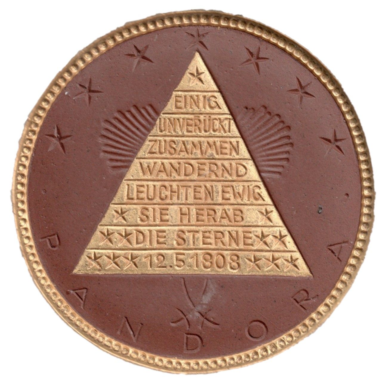 Опис: Грани монети позолочені, у центрі — квадрат із позолоченим краєм, а всередині нього зображено будівлю під назвою «Goldener Löwe» (золотий лев). Між кожною стороною квадрата та зовнішнім краєм розташована позолочена зірка. У верхньому краї квадрата вказано «1823», у нижньому — «1923».