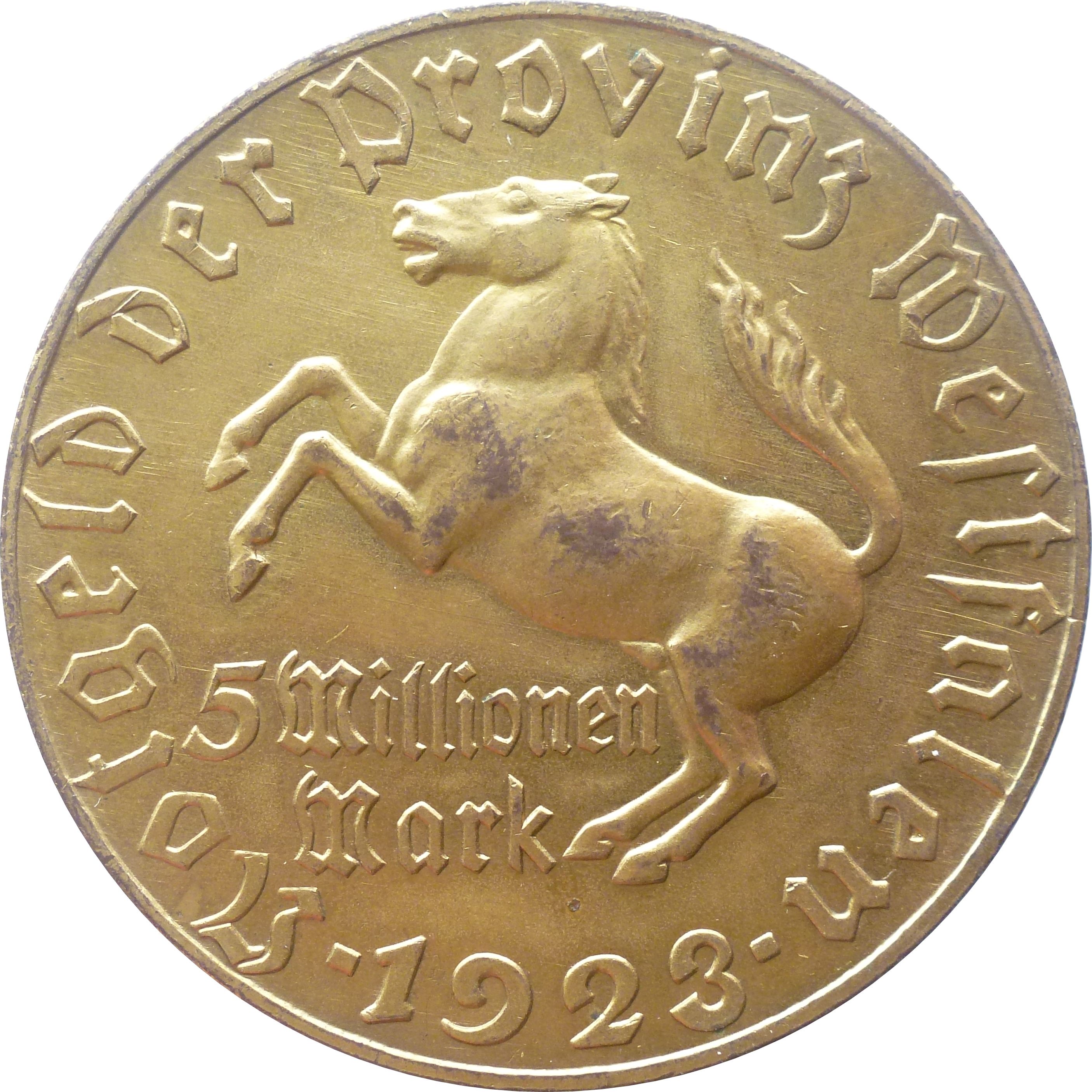 5 мільйонів марок — Вестфалія (Фрайхер фон Штейн) 1923 – 1923 Вестфалія, прусська провінція