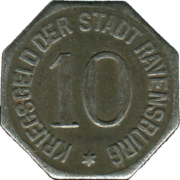 10 пфеннігів — Равенсбург 1918 – 1918 Равенсбург, місто