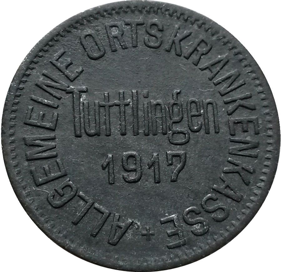 5 пфеннігів — Туттлінген (Allgemeine Ortskrankenkasse) 1917 – 1917 Туттлінген, місто