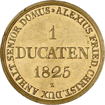 1 дукат — Алексій Фредерік Крістіан (Ausbeute-Harzgold-Dukat) 1825 – 1825 Ангальт-Бернбург