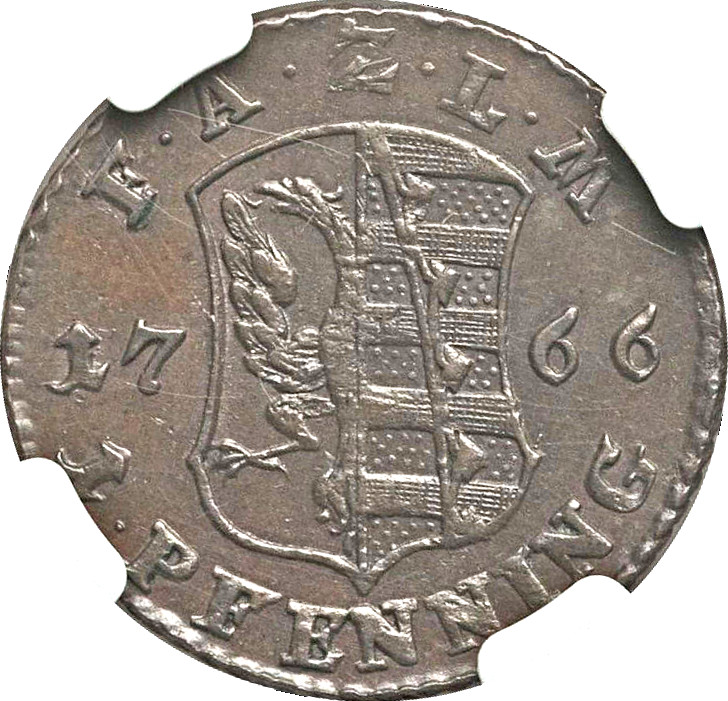 1 пфеннінг — Фредерік Август 1766 – 1766 Ангальт-Цербст, Князівство