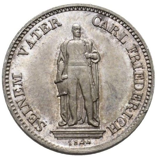 1 кройцер — Леопольд I (статуя Карла Фредеріка — срібний зразок) 1844 – 1844 Баден