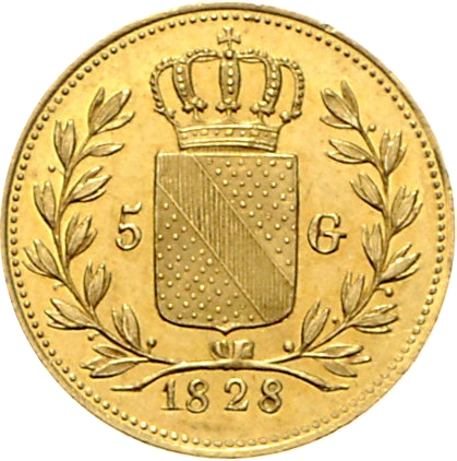 5 гульденів — Людовик I 1827 – 1828 Баден