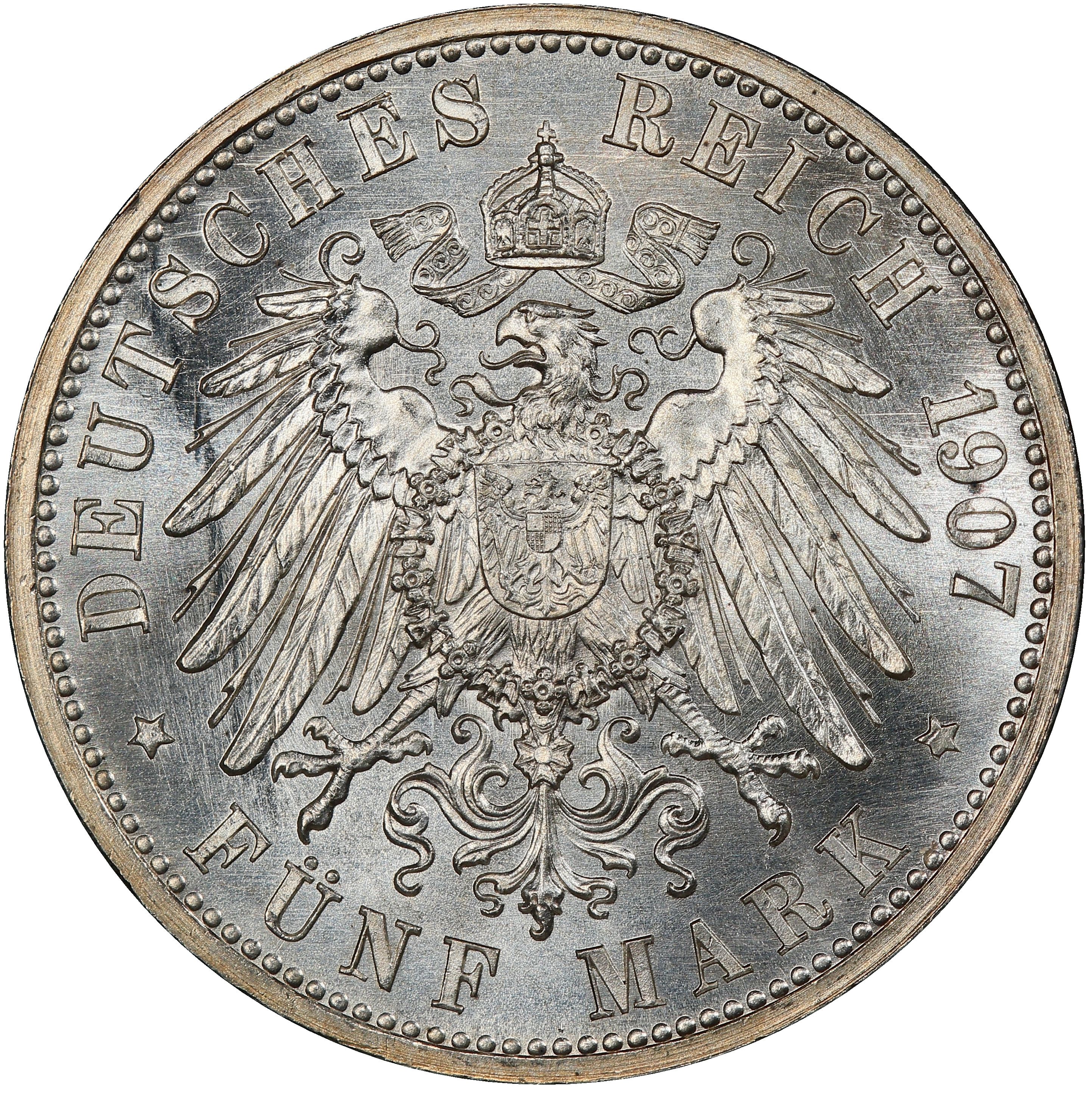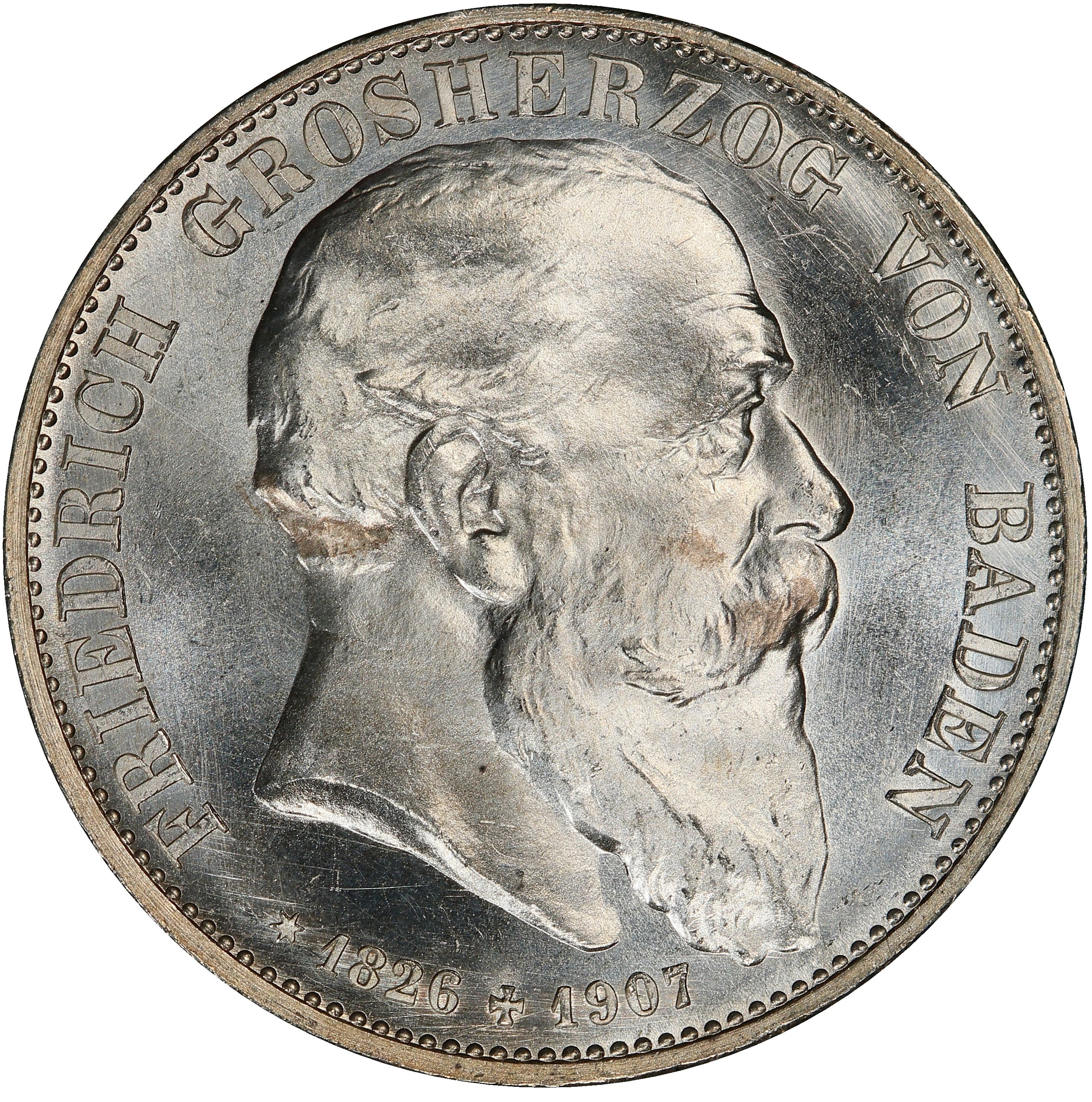 5 марок — Фрідріх I (Смерть Фрідріха I) 1907 – 1907 Баден