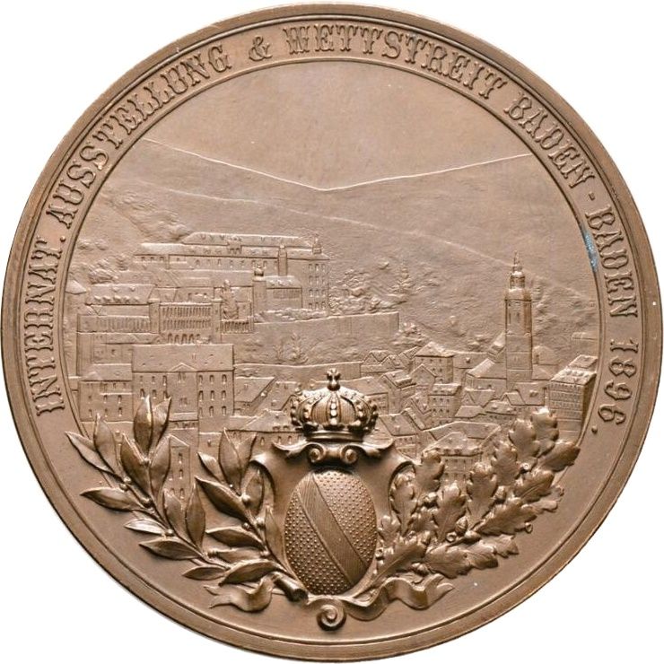 Медаль — Міжнародна виставка з гігієни, громадського харчування, армійських пайків, спорту, туризму та мистецтва і ремесел — Фредерік I 1896 – 1896 Баден