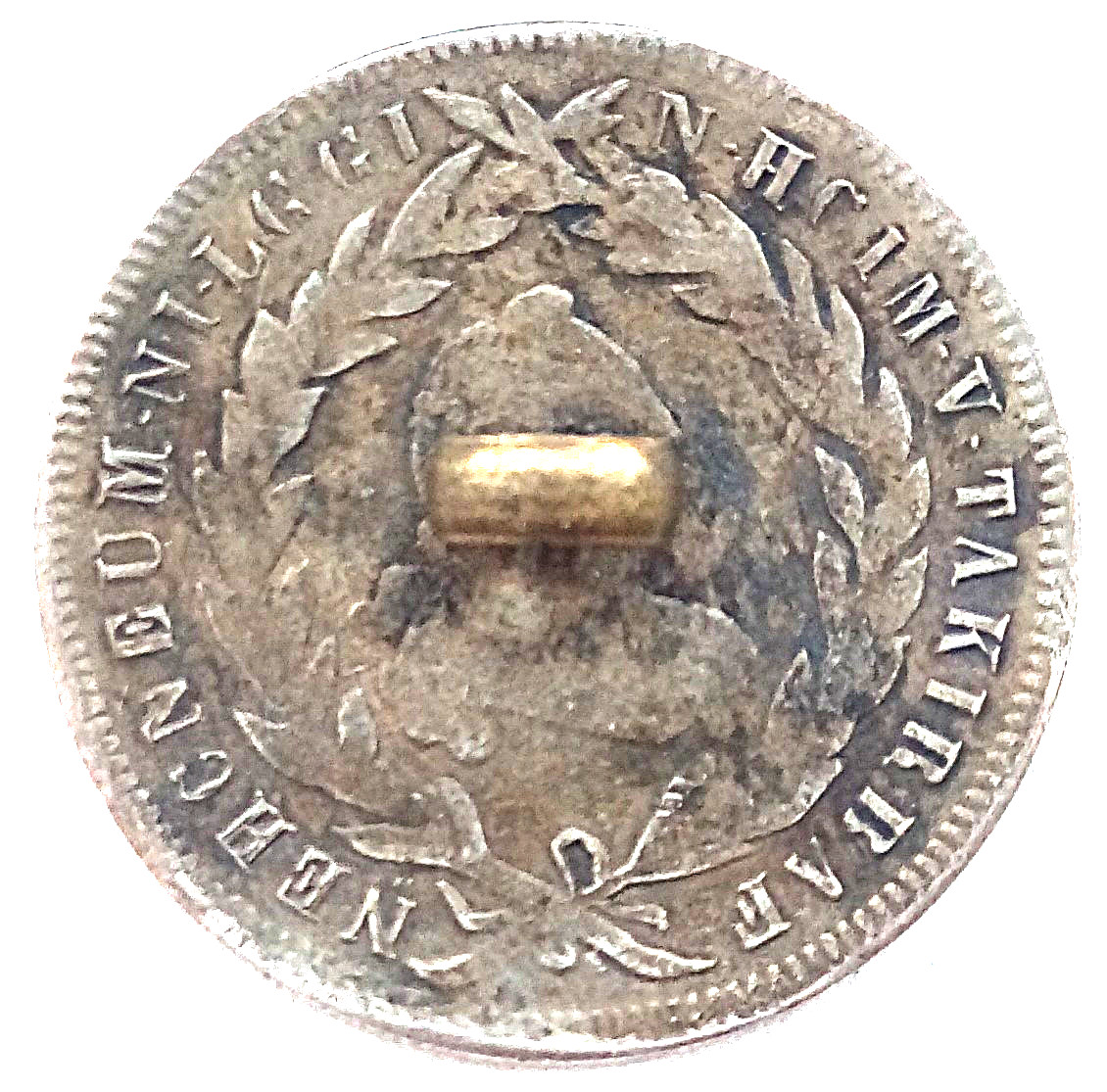 Опис: Увінчаний овал з чотириразовим гербом Баварії та Пфальца, з центральним щитом з імператорським яблуком, у бароковій рамці, оточений двома ланцюгами орденів, на п'єдесталі з номіналом «10», який розділяє дату, лаврові та пальмові гілки зліва та справа