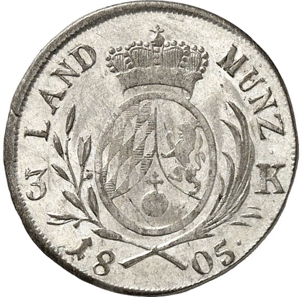 3 кройцери — Максиміліан IV Йозеф (Kreuzers Landmünze) 1804 – 1805 Баварія, курфюршество