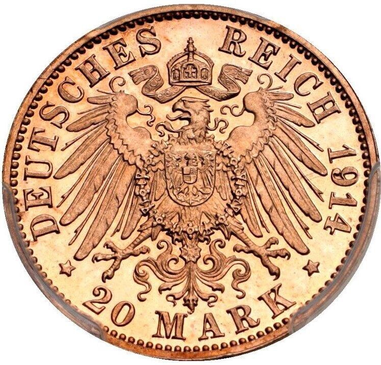 20 марок — Людовик III (позолочений зразок) 1914 – 1914 Баварія, Королівство