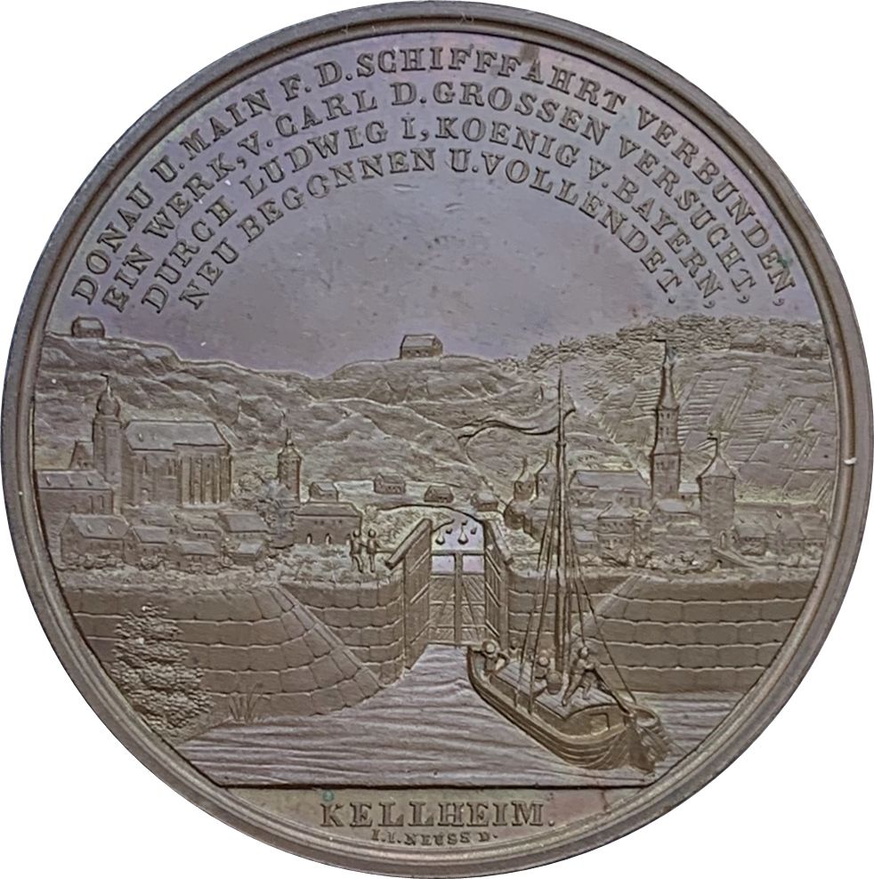 DONAU U.MAIN F. D. SCHIFFFAHRT VERBUNDEN, // EIN WERK,V. CARL D. GROSSEN VERSUCHT, // DURCH LUDWIG I, KOENIG V. BAYERN, // NEU BEGONNEN U. VOLLENDET.