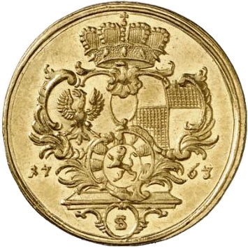 1 дукат — Крістіан Фредерік Карл Олександр 1763 – 1763 Бранденбург-Ансбах, маркграфство