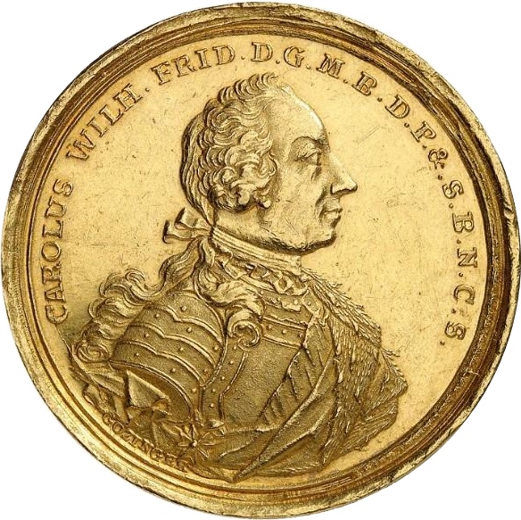 1 талер — Карл Вільгельм Фредерік (золотий зразок; Фалькенталер) 1753 – 1753 Бранденбург-Ансбах, маркграфство