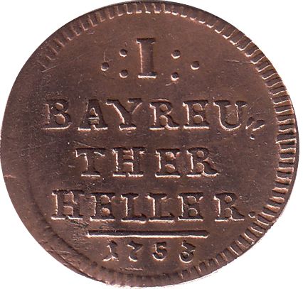 1 геллер — Фредерік 1749 – 1758 Бранденбург-Байройт, маркграфство