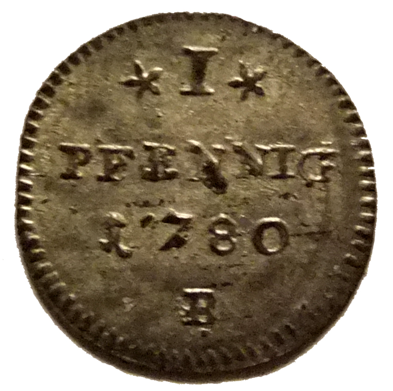 1 пфенніг — Крістіан Фредерік Карл Олександр 1780 – 1783 Бранденбург-Байройт, маркграфство