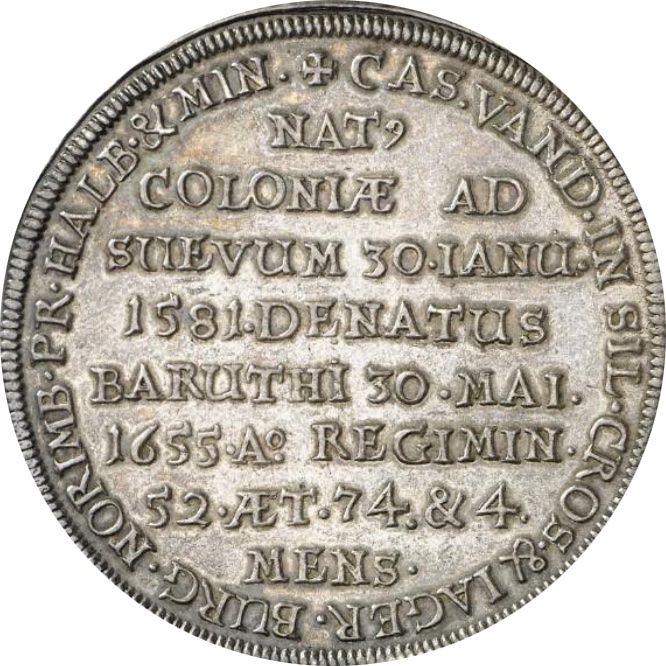 1 талер — Крістіан (Смерть) 1655 – 1655 Бранденбург-Байройт, маркграфство