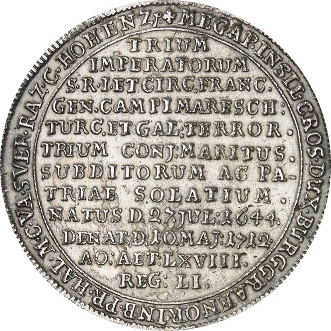 1 талер — Крістіан Ернест (смерть) 1712 – 1712 Бранденбург-Байройт, маркграфство
