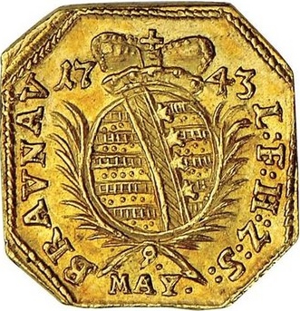 1 дукат (монета облоги) 1743 – 1743 Браунау, місто в облозі