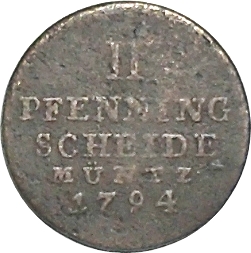 2 пфеніга — Георг III 1794 – 1807 Брунсвік-Люнебург-Каленберг-Ганновер