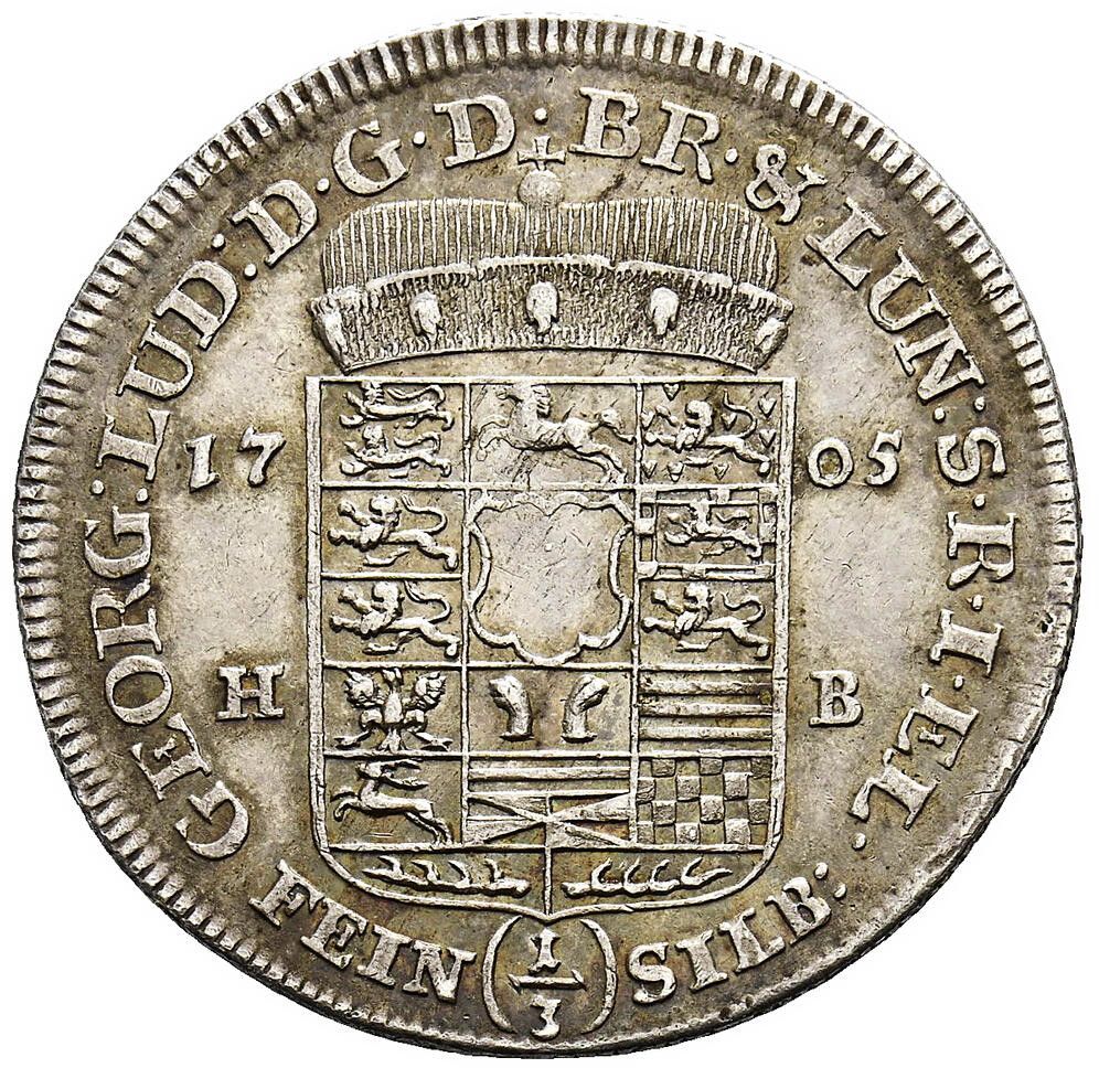 ⅓ талер — Георг I 1705 – 1705 Брунсвік-Люнебург-Каленберг-Ганновер