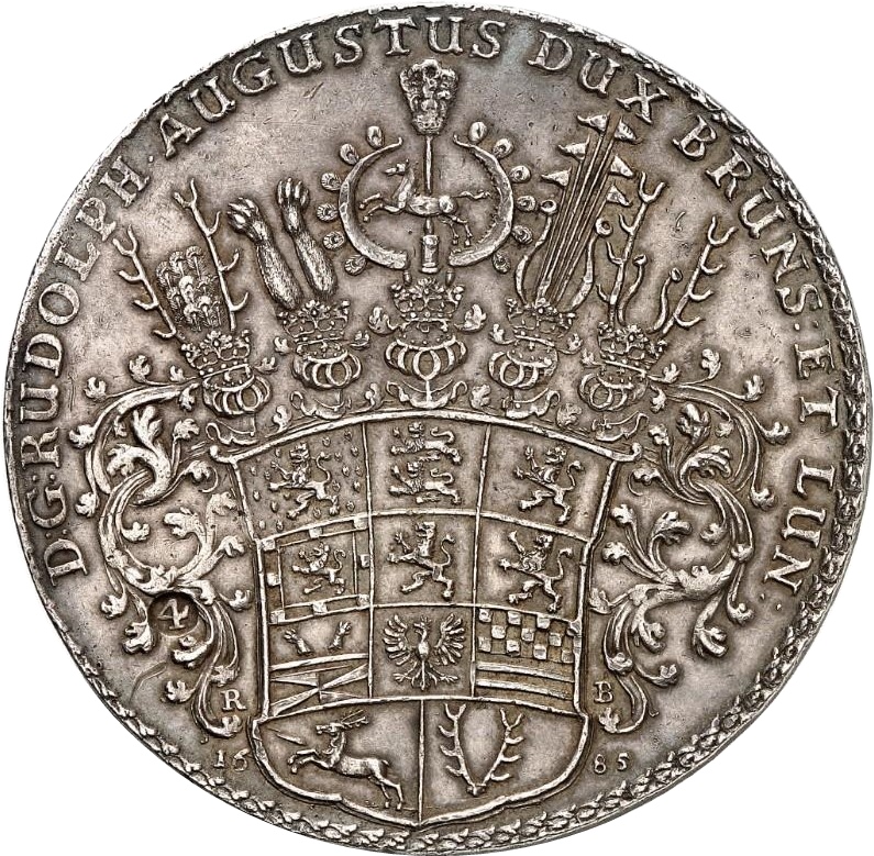 4 талери — Рудольф Август (Лаутенталь — Ausbeute Löser) 1685 – 1685 Брунсвік-Вольфенбюттель, Князівство
