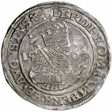 Опис: Напівфігура імператора праворуч розділяє дату, скіпетр над правим плечем, титули Фердинанда I.
