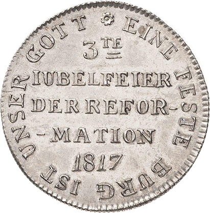 1 дукат (300-річчя Реформації; срібний зразок) 1817 – 1817 Франкфурт, вільне імперське місто