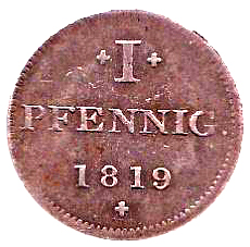 1 пфенніг «Judenpfennig» 1819 – 1819 Франкфурт, вільне імперське місто