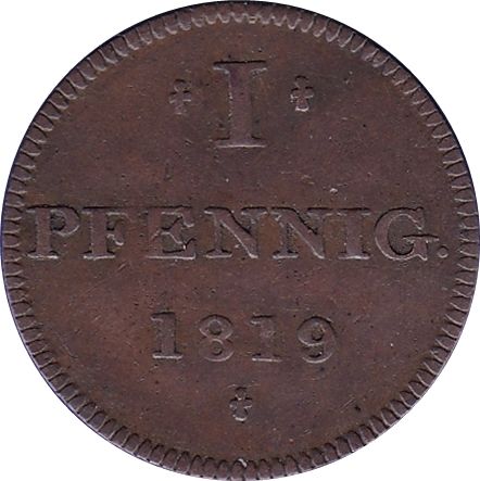 1 пфенніг «Judenpfennig» 1819 – 1819 Франкфурт, вільне імперське місто