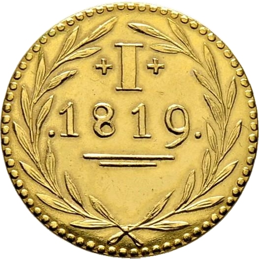 1 пфенніг «Judenpfennig» (золотий зразок) 1819 – 1819 Франкфурт, вільне імперське місто