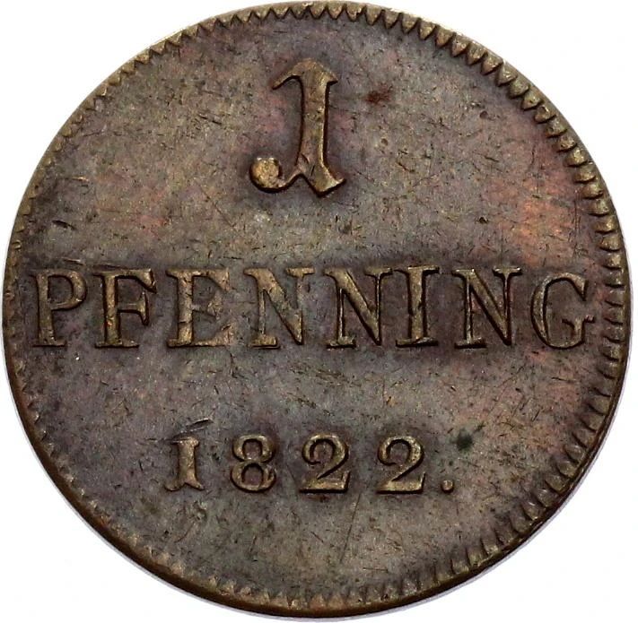 1 пфеннінг «Judenpfennig» 1822 – 1822 Франкфурт, вільне імперське місто