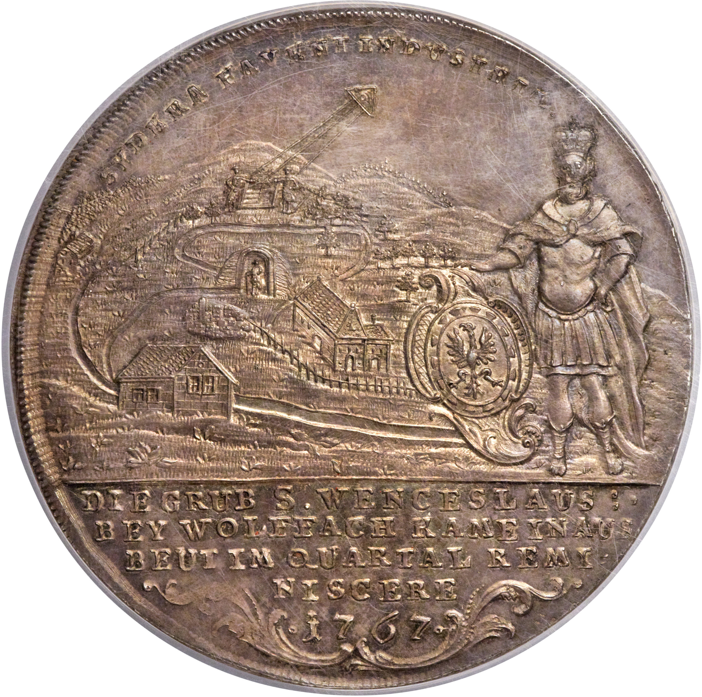 Опис: Сцена гірничої справи зі святим Венцелем праворуч.