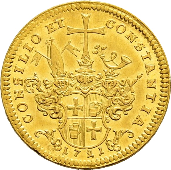 1 дукат — Костянтин з Буттлара 1715 – 1726 Фульда, абатство