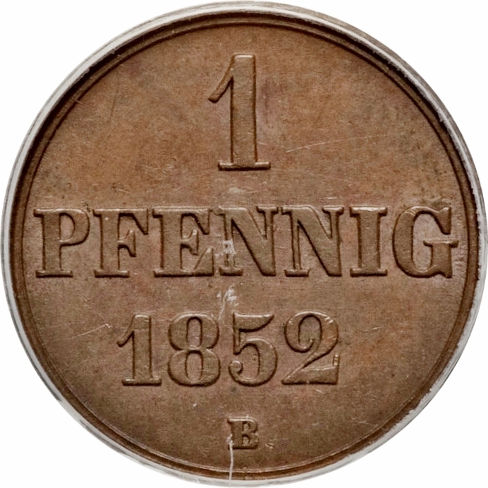 1 пфенніг — Георг V 1852 – 1852 Ганновер, Королівство