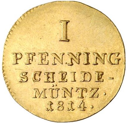 1 пфеннінг — Георг III (золотий зразок) 1814 – 1814 Ганновер, Королівство