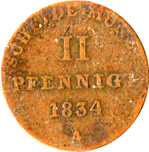 2 пфеніга — Вільгельм IV 1834 – 1834 Ганновер, Королівство