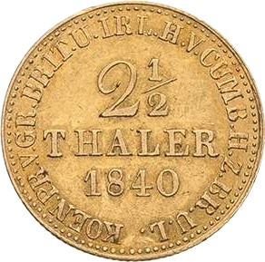 2½ талера — Ернест Август 1839 – 1843 Ганновер, Королівство