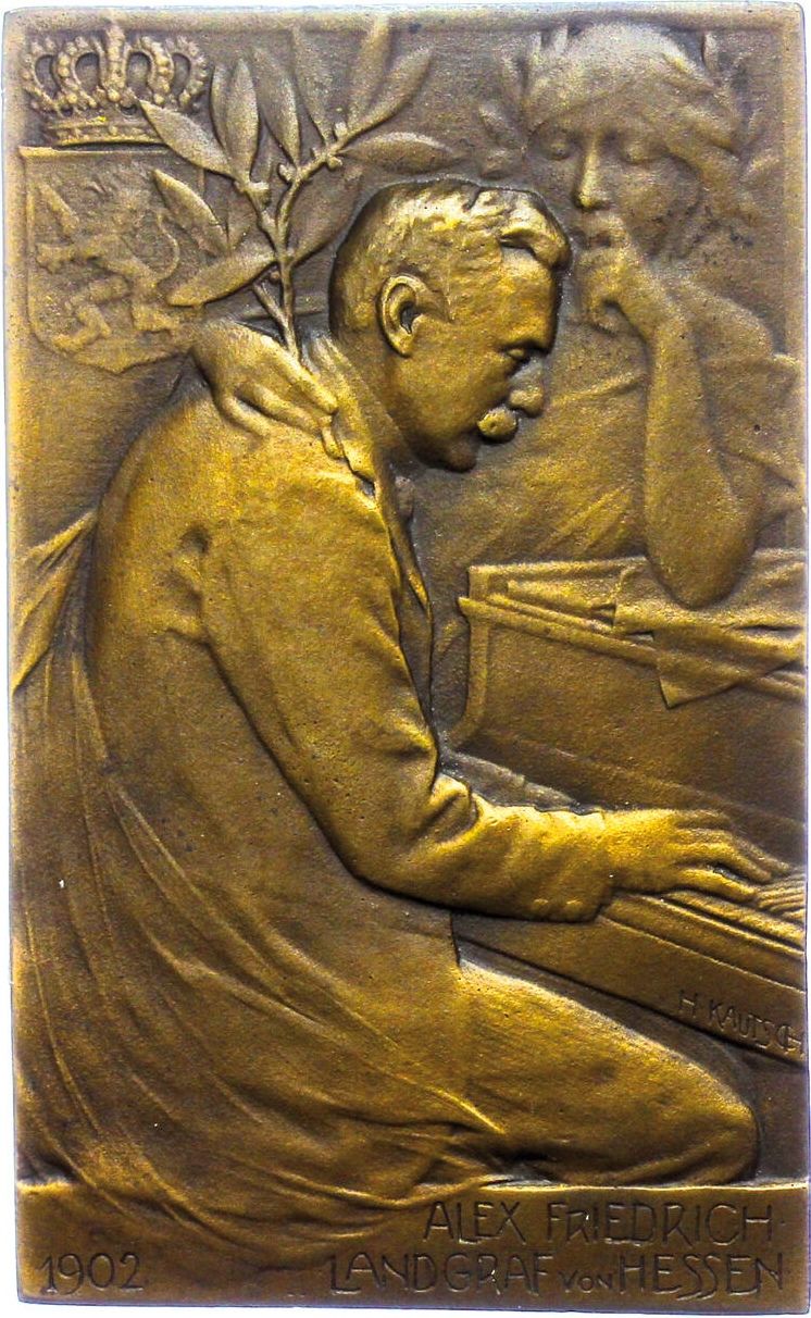 Опис: Сліпий ландграф грає на фортепіано, за ним стоїть жіноча постать, яка лівою рукою спирається на фортепіано, а правою обіймає ландграфа за шию. У руці вона тримає лаврову гілку, а в полі ліворуч вгорі зображено герб Гессена з короною.