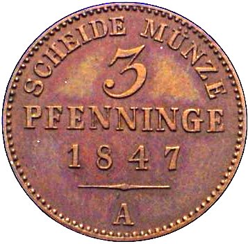 3 пфеніга — Пауль Олександр Леопольд II 1847 – 1847 Ліппе