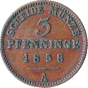 3 пфеніга — Пауль Фредерік Еміль Леопольд III 1858 – 1858 Ліппе