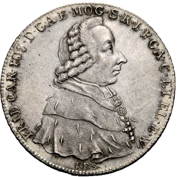 1 талер «Конвенційний талер» — Фредерік Карл Йозеф з Ерталя 1794 – 1794 Майнц, архієпископство