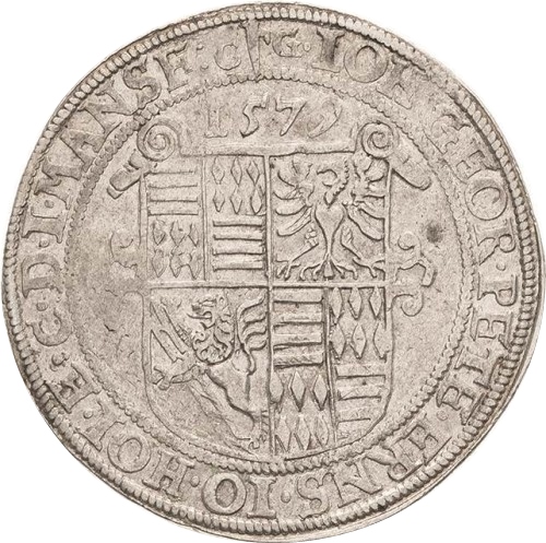1 талер — Йоган Георг I, Петер Ернст і Крістоф II 1577 – 1579 Мансфельд-Айслебен, округ