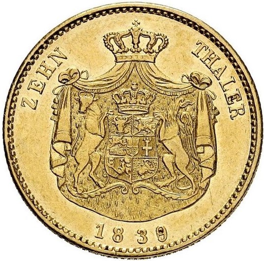 10 талерів — Пауль Фредерік 1839 – 1839 Мекленбург-Шверін