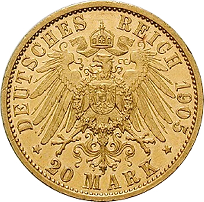 20 марок — Адольф Фредерік V 1905 – 1905 Мекленбург-Штреліц
