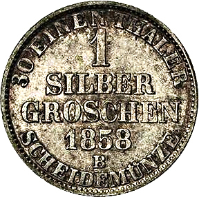1 срібний грош — Пауль Фредерік Август 1858 – 1858 Ольденбург-Біркенфельд, Князівство