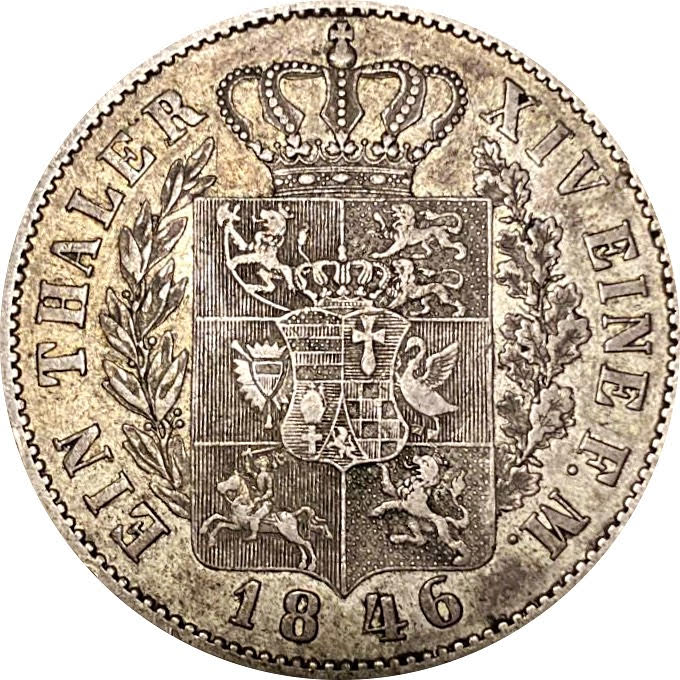 1 талер — Пауль Фредерік Август 1846 – 1846 Ольденбург, Велике герцогство