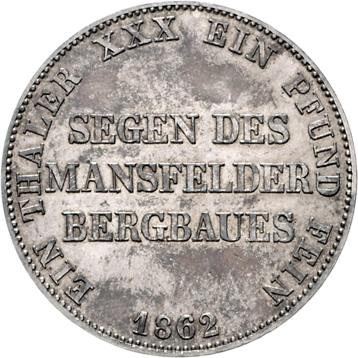 1 талер — Вільгельм I («Гірничий талер») 1861 – 1862 Пруссія, Королівство