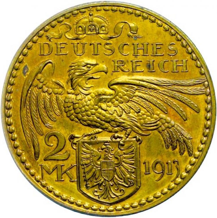 2 марки — Вільгельм II (зразок) 1913 – 1913 Пруссія, Королівство
