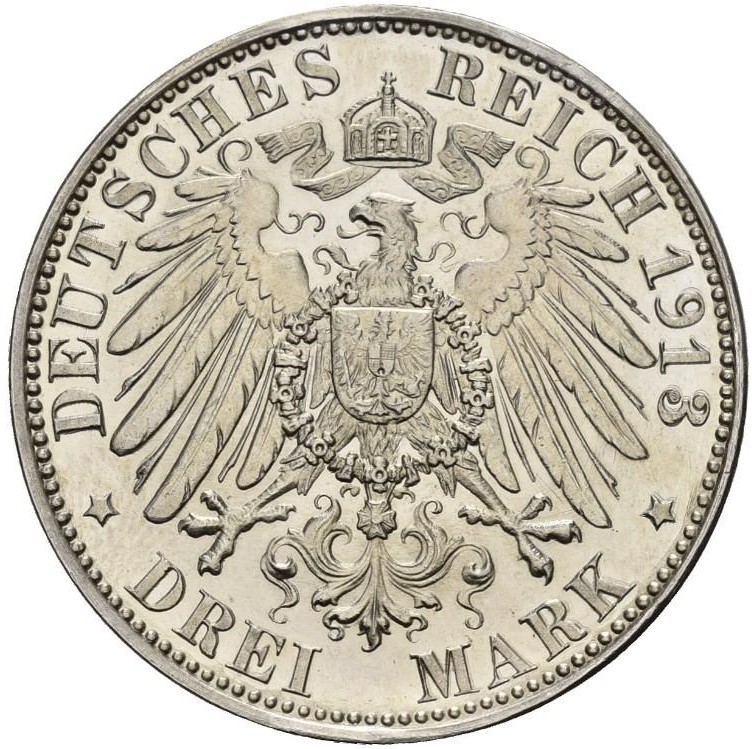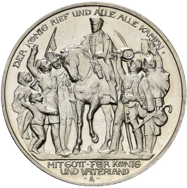 3 марки — Вільгельм II (Оголошення війни Пруссією Наполеону — зразок) 1913 – 1913 Пруссія, Королівство