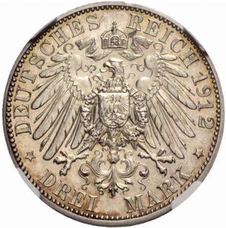 3 марки — Вільгельм II (правління — зразок) 1912 – 1912 Пруссія, Королівство